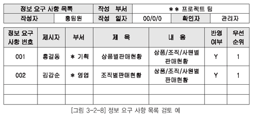 - [그림 3-2-8] 정보 요구 사항 목록 검토 예