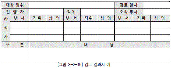 검토 세션이 종료되면 세션별로 그 결과를 정리한다. 검토 결과는 [그림 3-2-19]와 같은 양식에 정리한다