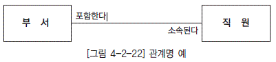[그림 4-2-24]는 어디에서나 접할 수 있는 사원과 부서 엔터티 간의 관계를 정의한 모습이다.