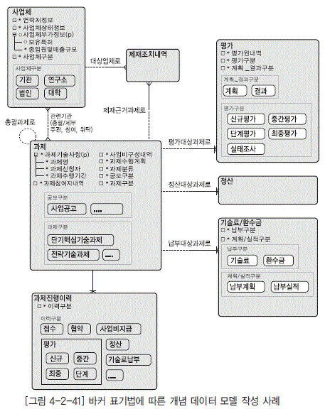 - [그림 4-2-41] 바커 표기법에 따른 개념 데이터 모델 작성 사례