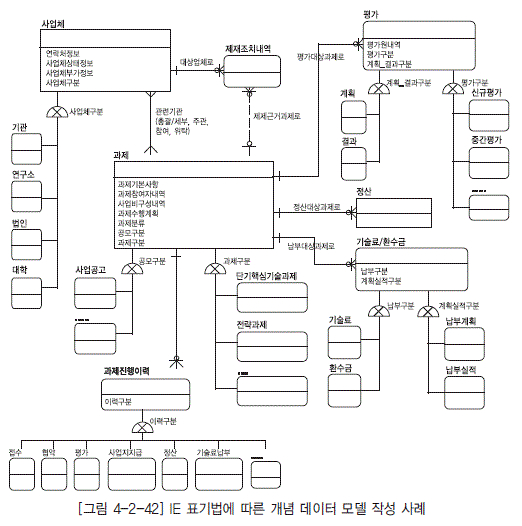 - [그림 4-2-42] IE 표기법에 따른 개념 데이터 모델 작성 사례