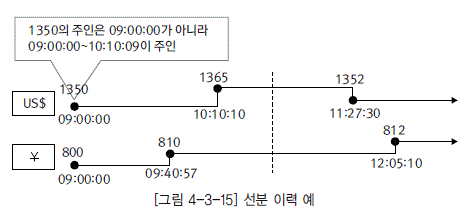 예를 들면 [그림 4-3-14]에서와 같이 통화 데이터에서 관리되고 있던 환율 데이터에 대한 다음과 같은 업무 요구 사항이 발생하면 환율에 대한 이력을 관리하게 된다.