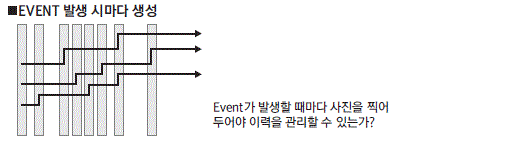 - EVENT 발생 시마다 생성-Event가 발생할 때마다 사진을 찍어 두어야 이력을 관리할 수 있는가?
