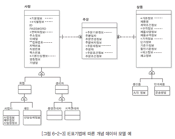 - [그림 6-2-3] IE표기법에 따른 개념 데이터 모델 예