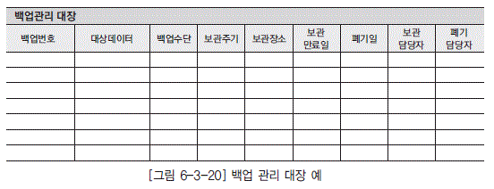 [그림 6-3-20] 백업 관리 대장 예