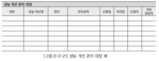 [그림 6-3-21] 성능 개선 관리 대장 예