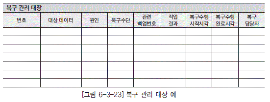 [그림 6-3-23] 복구 관리 대장 예