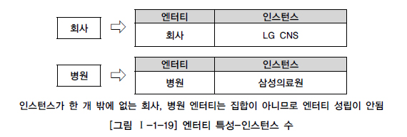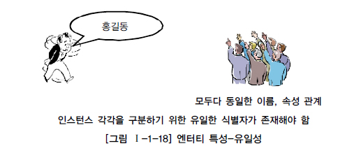 위의 엔터티와 인스턴스를 표현하면 [그림 Ⅰ-1-16]과 같다.