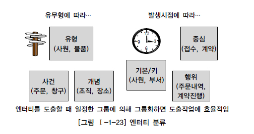 [그림 Ⅰ-1-23]은 두 가지 엔터티 분류 방법에 대한 예를 나타낸 것이다.