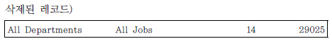 부서별과 전체 집계를 표시한 레코드에서 ‘ALL JOBS’와 ‘ALL DEPARTMENTS’라는 사용자 정의 텍스트를 확인할 수 있다. 일부 DBMS는 GROUPING_ID라는 비슷한 용도의 함수를 추가로 사용할 수도 있으므로 참조하기 바란다.