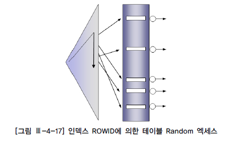 - 인덱스 rowid에 의한 테이블 액세스는 random 액세스인 반면, Full Table Scan은 Sequential 액세스 방식으로 이루어진다.