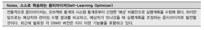 옵티마이저 관련 파라미터가 같더라도 버전에 따라 실행계획이 다를 수 있다. 또한, 같은 SQL이더라도 DBMS 종류에 따라 내부적으로 처리하는 방식이 다를 수 있다.