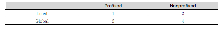Local과 Global, Prefixed와 Nonprefixed를 조합하면 아래 4가지 구성이 나온다.