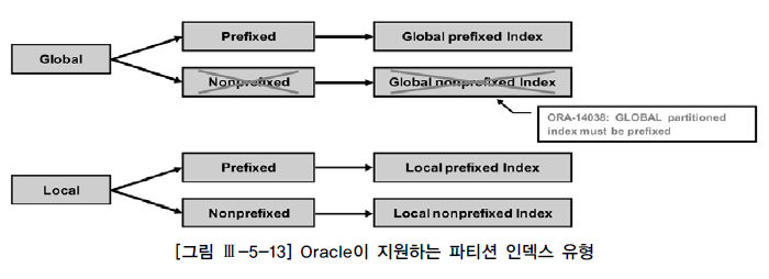 Oracle은 이 중에서 Global NonPrefixed 파티션 인덱스를 허용하지 않는다.