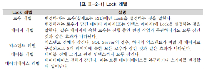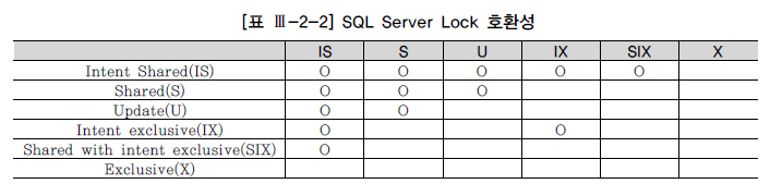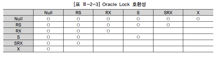 테이블 Lock끼리의 호환성은 [표 Ⅲ-2-3]과 같다.
